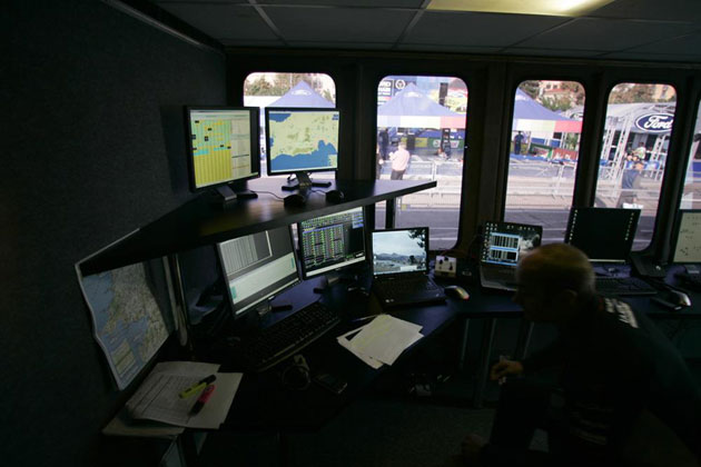 Fiecare maşină este dotată cu un dispozitiv de urmărire, iar poziţionarea exactă a acesteia este stabilită prin intermediul unor semnale GPS, în acelaşi mod în care funcţionează şi un banal sistem de navigaţie de pe maşinile de serie. Sistemul de poziţionare din maşină converteşte semnalul într-un mesaj care este transmis printr-un modem radio unui avion care survolează zona de desfăşurare a probei speciale la o altitudine de aproximativ 7.000 de metri.
