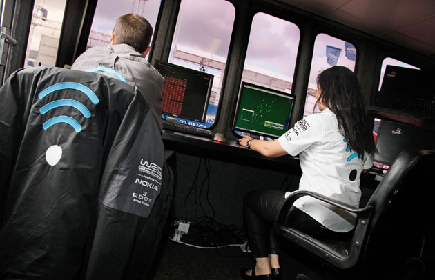 Ulterior, mesajul este recepţionat în parcul de service prin intermediul unei antene situate pe camionul celor de la Stage One Technology şi ajunge imediat la echipe. Pentru buna funcţionare a sistemului, o conexiune stabilă la internet este esenţială, întrucât datele obţinute sunt transmise în paralel la sediul central al Stage One Technology din localitatea britanică Warwick pentru verificare.