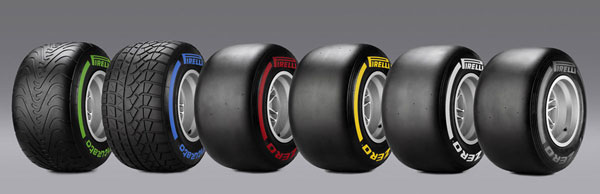 Pirelli a schimbat modul de marcare al pneurilor pentru sezonul 2012 pentru ca acestea să fie mai uşor de distins pentru fani, iar cauciucurile de ploaie au suferit modificări majore.