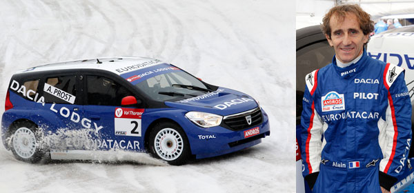 Trio-ul francez ales de Dacia pentru a căuta succesul în acest sezon de Trophee Andros a mizat tot timpul pe noul Lodgy Glace, primul monovolum înscris în competiţie. Prezent în două exemplare, unul pentru Alain Prost şi unul pentru ceilalţi doi piloţi mai tineri, Lodgy Glace a alergat din greu după un loc pe podium. Cu pană pe roata spate, cu un spoiler spart şi cu multă zăpadă înghiţită de articulaţiile suspensiei, Lodgy a făcut faţă concurenţei.