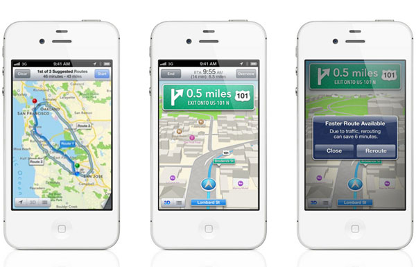 Odată cu anunţarea noului sistem mobil de operare iOS 6, Apple renunţă la Google Maps. Locul său va fi luat de o aplicaţie nouă, botezată Maps, care foloseşte hărţi TomTom şi poate fi accesată prin Siri.