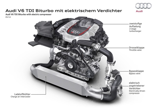 Încă de la prezentarea respectivului concept, Audi a refuzat să confirme pentru producţie motorizarea expusă de RS5 TDI. Dar tehnologia turbinei electrice ar putea să-şi facă apariţia în gama nemţilor în anii ce vor urma, după cum explică Ulrich Hackenberg, directorul departamentului de dezvoltare al mărcii germane. Această turbină este posibilă doar prin folosirea de sisteme electrice de 48 volţi, care sunt în lucru pentru adaptarea la vehiculele de serie.