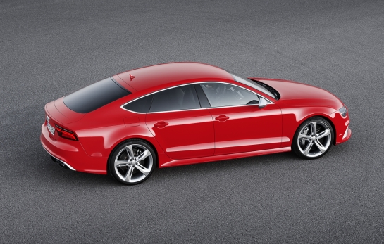 Motorizarea 4.0 V8 bi-turbo TFSI îşi păstrează nivelul de putere şi cuplul maxim asigurate înainte de facelift, respectiv 560 CP şi 700 Nm. Asta înseamnă că acceleraţia de la 0 la 100 km/h este realizată în 3.9 secunde, iar viteza maximă este limitată electronic la 250 km/h. Comandarea pachetului dinamic opţional ridică limitarea la 280, respectiv 305 km/h. Conform ciclului de testare european, modelul anunţă un consum mediu de 9.5 litri la sută şi emisii CO2 de 221 grame pe kilometru. Transmisia standard este un tiptronic cu opt trepte, cuplat unui sistem quattro de tracţiune integrală. Opţional, Audi oferă un diferenţial sport pentru puntea spate, pentru cei care doresc să maximizeze dinamismul lui RS7 Sportback. Motorizarea V8 cu două turbosuflante realizează aceste valori datorită unui sistem "Cylinder on Demand", care dezactivează până la patru cilindri în timpul mersului pentru a economisi carburant. După cum este de aşteptat de la un model premium, această dezactivare este imperceptibilă pentru utilizator.