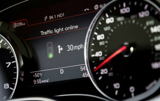 Sistemul este numit Traffic Light Assistant şi îi indică şoferului viteza optimă pentru a trece pe verde pe la toate semafoarele. Acesta ia în considerare şi schimbările de bandă, dar necesită semafoare inteligente. Tehnologia a fost testată deja în Ingolstadt şi Berlin, în Germania, precum şi în Verona (Italia) şi în Las Vegas. În Frankfurt, 20 de semafoare au fost echipate cu acest sistem în scop demonstrativ, pentru ca flota de test a celor de la Audi să-şi poată demonstra capacităţile. Odată ce acest sistem va fi integrat la scară mare, economiile de carburant sunt cu adevărat impresionante. Spre exemplu, dacă tehnologia ar fi implementată în Germania pentru fiecare semafor, cei de la Audi spun că ar fi economisiţi 900 de milioane de litri de carburant într-un an.