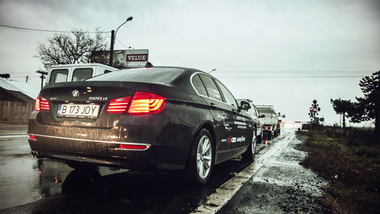Centura Bucureştiului ne aruncă înapoi pe DN1, pentru ca 520d xDrive să ne sfârşească experienţa pe platoul de filmare încropit în benzinăria Rompetrol, adică acolo unde a început totul. Nervi, picioare ude, un hanorac mustind, încruntare şi o poză de final. Un zâmbet timid, câteva înjurături suspinate printre dinţi şi un sentiment de uşurare. Dorinţa de a călca nenorocita de acceleraţie la fund, până acasă, pentru a răzbuna concentrarea din ultimele ore. Admiraţie amestecată cu înveninare şi amărăciune stropită cu resemnare.