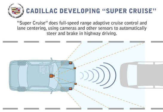 Sistemul Super Cruise este aşteptat să debuteze pe viitorul CTS, care va fi echipat cu tehnologia vehicle-to-vehicle. Aceasta din urmă le permite vehiculelor autonome şi semi-autonome să comunice între ele independent de şoferii lor şi să-şi transmită viteza de rulare, direcţia în care se îndreaptă şi poziţia exactă folosind coordonate GPS. Aceste infomaţii vor ajuta vehiculele autonome să se încadreze mai bine pe drum şi să evite eventualele accidente care ar putea să aibă loc din diferiţi factori neprevăzuţi. În plus, vehiculele autonome ar putea să intuiască situaţiile în care anumite drumuri devin prea aglomerate şi să schimbe traseul în mod automat pentru a evita prelungirea timpului de călătorie. Informaţiile ar fi folosite doar de sistemele vehiculelor, nu şi de autorităţi, iar formatul acestora ar putea deveni un standard în industrie pentru ca vehiculele mai multor producători să comunice cu uşurinţă.