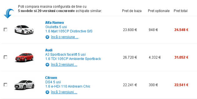 Şi pentru că nu favorizăm pe nimeni, la finalul modelului configurat de tine îţi oferim o listă cu potenţialii rivali. Cum facem selecţia? Luăm în calcul modele din acelaşi segment, cu acelaşi tip de caroserie, cu motorizări identice şi puteri apropiate.