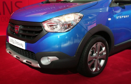 Așadar, singura premieră mondială în adevăratul sens al cuvântului este Lodgy Stepway, o versiune cross a monovolumului produs în Maroc. După cum ne-au recunoscut reprezentanții Dacia în cadrul unei conferințe realizată special pentru jurnaliștii din România, vânzările modelului Lodgy au fost sub așteptările inițiale, așa că o asemenea versiune era exact ceea ce a recomandat doctorul în privința împrospătării gamei fără a aplica un facelift. La fel ca la Dokker Stepway, Lodgy este oferit alături de nuanța specială de albastru asociată acestor versiuni, ornamente pasaje roți de culoare neagră, proiectoare de ceață cu ornamente crom satinat, ornamente față și spate cu aspect crom satinat, tapițerie și covorașe inscripționate ”Stepway” și cu model special, bară de protecție față și spate (doar pentru Lodgy) în culoarea caroseriei, bare de pavilion longitudinale cu aspect Dark Metal, jante aluminiu cu finisaj Dark Metal, carcase oglinzi laterale cu finisaj Dark Metal, baghete laterale de culoare neagră și, special pentru Lodgy Stepway, calandru și bandou superior de culoare neagră.