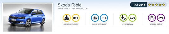 Un model foarte relevant pentru piaţa românească testat de EuroNCAP este noua generaţie Skoda Fabia. În testul recent apărut pe Automarket vă spuneam că inginerii mărcii din Cehia au aşteptări mari de la modelul lor la capitolul siguranţă, iar speranţele lor se dovedesc acoperite de un rezultat excelent al modelului de segment mic. Cu 81% din punctele totale posibile la Protecţia Pasagerilor Adulţi şi la Protecţia Pasagerilor Copii, Fabia reuşeşte 69% la capitolele Protecţia Pietonilor şi Sisteme de Asistenţă, ceea ce califică modelul mărcii cehe la rating-ul maxim, de cinci stele. Singurul capitol la care Fabia a punctat foarte slab a fost protecţia la nivel cervical pentru pasagerii din spate în cazul unui impact din spate, inginerii EuroNCAP notând faptul că acest lucru se datorează geometriei banchetei posterioare. De asemenea, Fabia nu a primit punctele pe care EuroNCAP le acordă pentru sistemele de asistenţă la părăsirea accidentală a benzii, pentru că modelul ceh nu dispune de acest tip de pachet.
