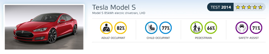 Unul dintre cele mai interesante modele lansate în Europa în acest an, Tesla Model S, a adunat cinci stele EuroNCAP, chiar dacă punctajele reuşite de modelul full-electric american nu au fost extrem de ridicate la cele patru categorii principale de notare. Cu 82% din punctele totale posibile la capitolul Pasageri Adulţi, 77% la Pasageri Copii, 66% la Protecţia Pietonilor şi 71% la Sisteme de Asistenţă şi Siguranţă, Model S este unul dintre modelele care au reuşit in extremis să se califice ca punctaj total general la cinci stele. Cele mai mari lipsuri ale lui Tesla Model S au fost subliniate la testul de impact lateral cu stâlpul, acolo unde protecţia la nivelul pieptului este considerată mediocră, şi la protecţia pasagerului din dreapta, care din cauza unei probleme de umflare a airbag-ului loveşte bordul cu capul la impactul frontal. Conform celor de la EuroNCAP, Tesla Motors a rezolvat problema pe toate maşinile vândute clienţilor, cauza fiind legată de setările necorespunzătoare ale software-ului de calibrare. Nu în ultimul rând, Model S a fost penalizat pentru lipsa unui sistem de frânare automată la viteze de croazieră pe şosea şi autostradă.