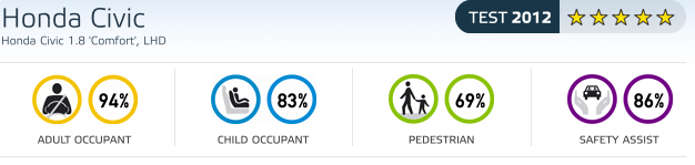 Honda Civic a primit punctajul maxim la testele EuroNCAP din 2012, totalizând cinci stele de siguranţă. Modelul a obţinut un procent mare din numărul de puncte disponibile la toate categoriile testate şi s-a remarcat la capitolul ”Safety Assist” cu sistemul opţional Honda Collision Mitigation Brake System. Respectivul sistem a fost premiat de EuroNCAP Advanced în 2010.