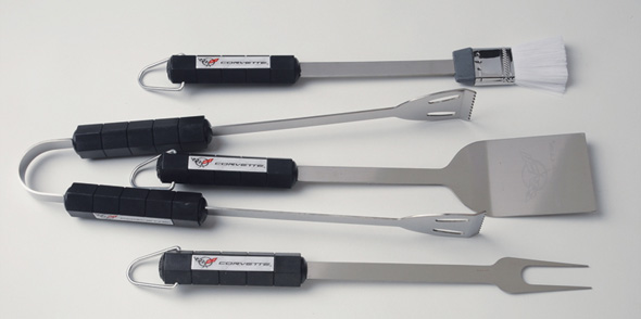 Şi dacă tot suntem la mărci populare, Chevrolet a dat-o americăneşte şi a creat un set de ustensile pentru grătar. Pentru grătar viteză, poate: poartă logo-ul Corvette. 45 USD