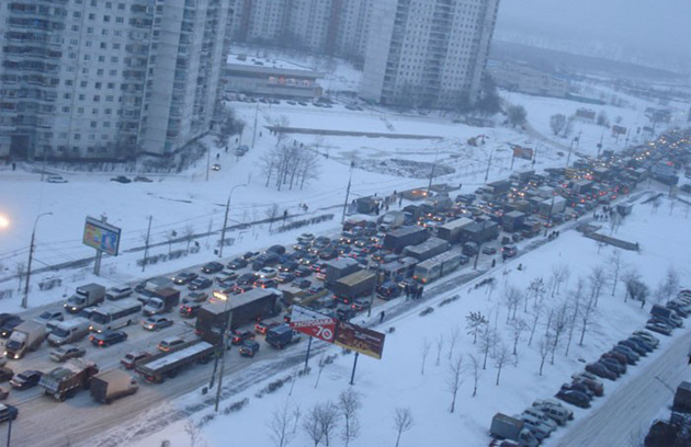Moscova este şi ea celebră pentru blocajele din trafic. Ne amintim cu toţii fotografiile cu bulevardele centrale din capitala Rusiei blocate. Se pare însă că iarna este cel mai mare adversar al şoferilor moscoviţi. Zăpada depusă pe carosabil aduce accidente şi străzi blocate şi asta duce la ambuteiaje imense. Sună cunoscut!