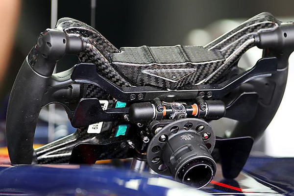 Cum arată partea din spate a unui volan Red Bull din sezonul 2010