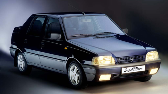 După ce Dacia a fost preluată de Renault în 1999, primul produs fabricat sub noul patronat este SupeRNova. Practic, Dacia Nova primea un motor şi o cutie de viteze Renault plus câteva îmbunătăţiri şi era lansată sub un nume nou. SupeRNova era un joc de cuvinte dintre numele original şi particula Super iar litera mare R semnifica Renault. O Nova mai bună, pe scurt.