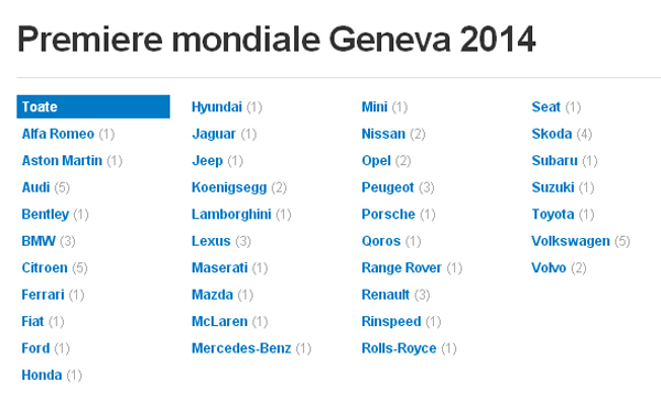 03 martie, 14:35: Bine aţi venit în secţiunea de LIVE TEXT de la Salonul Auto de la Geneva. Rămâneţi pe această pagină pentru informaţii calde şi rapide de la standurile constructorilor auto prezenţi la salonul european care deschide sezonul. Avem oameni la Geneva şi Bucureşti, iar informaţiile vor fi completate cu fotografii, clipuri şi tweet-uri de la faţa locului.