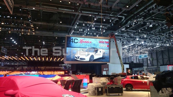 16:59 Alfa Romeo va expune mâine la Salonul de la Geneva versiunea Spider a sportive 4C. Deşi nu există anunţ oficial, aparatele foto ale jurnaliştilor curioşi au surprins imaginea de mai jos astăzi la repetiţiile care au loc la standul italienilor: