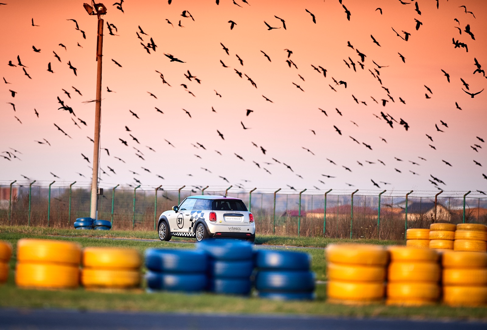 Sar peste bara metalică a roll cage-ului, mă așez comod în scaunul de curse și-mi prind centurile. În ultimii ani mi-am petrecut câteva zile bune în mașinile de raliu, iar creierul meu se pregătea pentru sunete metalice și bolboroseli adânci. Dar cu Mini Electric Racing nu e așa. Pornești motorul și te întâmpină doar un sunet demn de filmele SF. Nu tu vibrații, nu tu zgomote, doar pietricelele care lovesc caroseria îți sugerează că vei avea parte de alte senzații decât cele cu care te-au obișnuit mașinile de stradă.