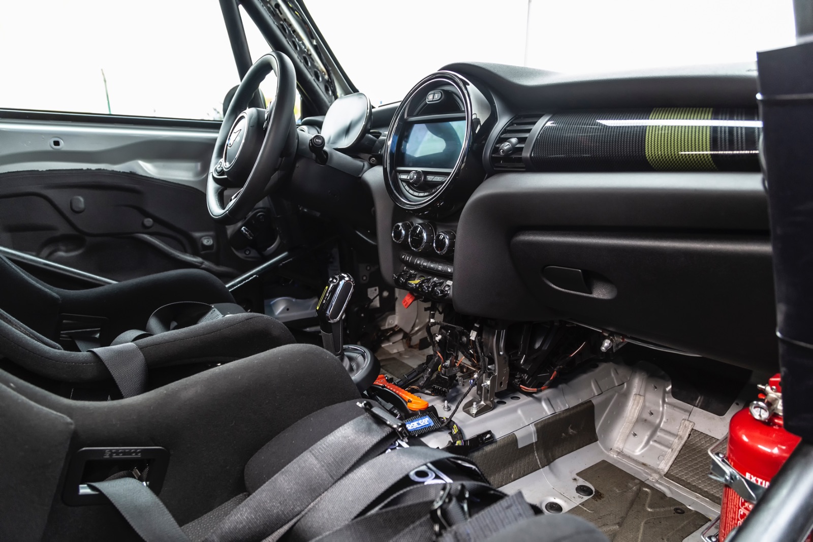 Pentru a putea lua stratul în cadrul etapei de la Brașov, Mini Electric Racing a primit un roll cage complet, scaune și centuri omologate și, bineînțeles, un sistem general pentru stingerea incendiilor. La toate acestea s-au adăugat și jantele de 17 inch Team Dynamics Pro Race echipate cu anvelope Michelin Pilot Sport 4. Per total, modificările aduse au făcut ca masa totală a modelului electric să fie mai mică cu 150 de kilograme comparativ cu cea a unui vehicul de serie.