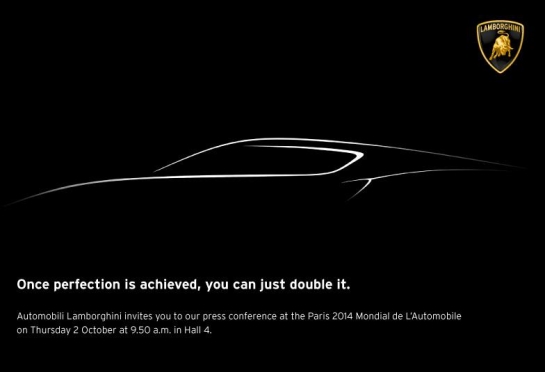 Lamborghini va dezveli în cadrul standului său de la Salonul Auto de la Paris un nou model. Pentru moment, italienii au fost zgârciţi în declaraţii, publicând o imagine teaser alături de o declaraţie misterioasă: "odată ce perfecţiunea este atinsă, poţi doar să o dublezi". Afirmaţia oficialilor mărcii italiene ar sugera lansarea unui model cu patru locuri în gamă, dar silueta modelului din imaginea teaser publicată de constructorul din Sant'Agata sugerează un coupe în locul unei berline.