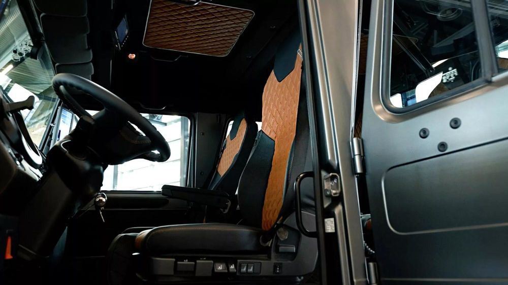 Acest exemplar unicat îmbină ingineria clasică a lui Unimog cu materiale premium și un stil spectaculos, gândit să impresioneze atât pe trasee noroioase, cât și în fața unor hoteluri de lux. Sub aparențele rafinate, baza rămâne un Unimog U 4023, echipat cu diferențiale blocabile pe toate cele 3 axe.