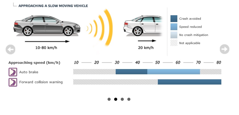 EuroNCAP a început testarea sistemelor de frânare autonomă, a căror idee este explicată în clipul de mai sus. Cercetările au arătat că 90% dintre accidentele rutiere sunt cauzate din vina şoferilor neatenţi, aşa că aceste sisteme ar putea fi cruciale în viitor. În lumea reală, asemenea sisteme reduc riscul de accident cu 27% şi duc şi la o reducere semnificativă a rănirilor grave şi a deceselor rutiere, în cazul în care accidentele respective au loc, deoarece sistemul are şi rolul de a reduce viteza atunci când accidentul nu poate fi evitat.