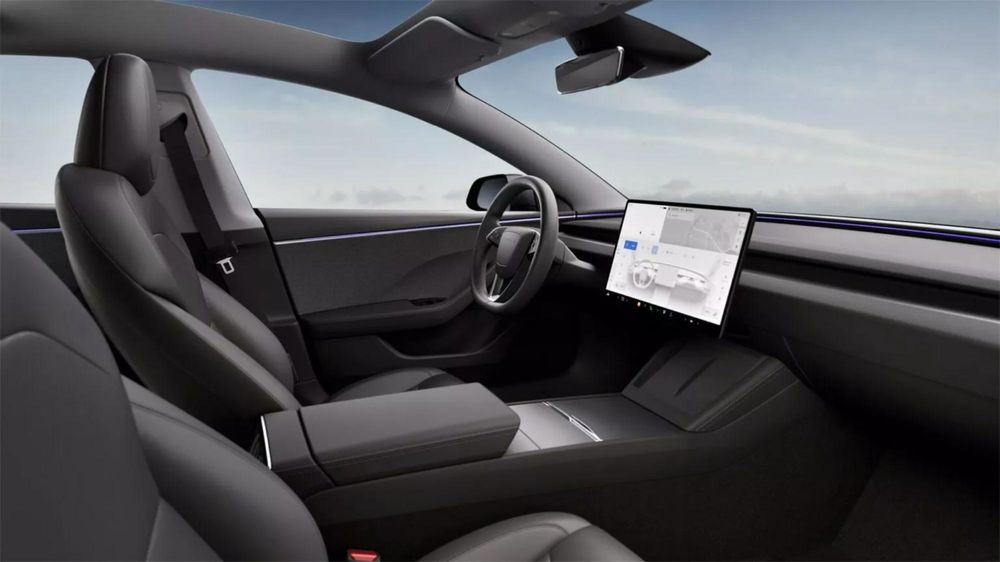 Bineînțeles, pentru că este o versiune și mai ieftină, dotările în standard sunt acum mai puține. Cel mai accesibil Model 3 vine echipat cu jante de 18 inch care pot fi vopsite în doar 3 culori: alb, negru sau gri. De asemenea, interiorul este mai simplu, cu tapițerie textilă, fără iluminare ambientală, fără scaune încălzite și un volan reglabil manual. Din lista de dotări dispare și ecranul special pentru marșarier.