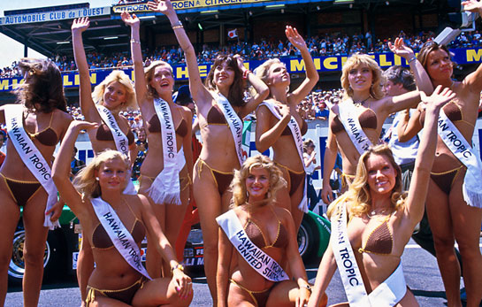 La Cursa de 24 de ore de la Le Mans din sezonul 1983, unul dintre sponsorii principali a fost producătorul de loţiuni de bronzat Hawaiian Tropic. Pentru a-şi promova cât mai bine numele, compania a decis să aducă mai multe modele din Statele Unite care au apărut pe grila de start înainte de startul cursei îmbrăcate doar cu bikini care purtau numele sponsorului.