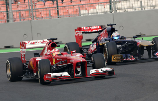 Revenirea la pneurile din sezonul precedent ca urmare a unor pene în lanţ în Marele Premiu al Marii Britanii a schimbat însă complet datele problemei: Vettel a câştigat fiecare dintre ultimele nouă curse ale anului, astfel că podiumurile sporadice ale lui Alonso nu l-au ajutat să rămână în lupta pentru titlul mondial.