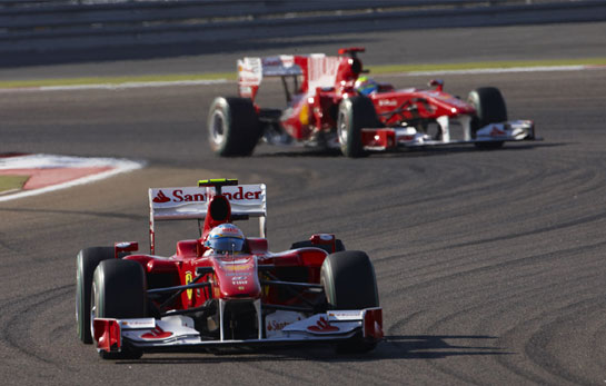 Ferrari a început sezonul cu o victorie obţinută de Fernando Alonso şi un loc doi pentru Felipe Massa, însă a fost un simplu foc de paie: în următoarele nouă curse, echipa a mai urcat pe podiumul de premiere de numai trei ori. Revirimentul s-a produs la Marele Premiu al Germaniei, care a rămas în istorie pentru mesajul codificat primit de Massa, "Felipe, Fernando is faster than you", prin care brazilianul a fost nevoit să-i cedeze prima poziţie lui Alonso.