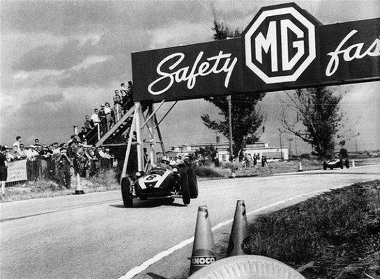 " Într-o încercare disperată de a oferi echipei lui Enzo Ferrari o victorie, organizatorii Marelui Premiu al Italiei au decis să maximizeze avantajul monopostului Scuderiei pe liniile drepte prin combinarea drumului de la Monza cu circuitul oval." Cand vad cum se preocupa unii numai sa faca aranjamente de culise de frica sa nu piarda intr-o lupta dreapta ii multumesc lui Dumnezeu ca mi-a dat sa nu fiu unul din acesti micuti jalnici.