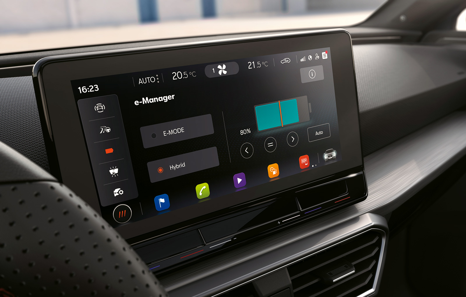 Seat Leon în varianta plug-in hybrid este echipat cu un motor pe benzină de 1.4 litri și un motor electric pentru un total de 204 cai putere și 350 Nm. Resursele vor fi gestionate de o cutie automată DSG cu șase trepte, iar motorul electric va fi alimentat de o baterie cu o capacitate brută de 13 kWh.