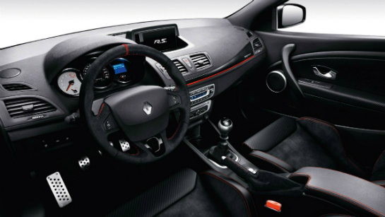 Interiorul lui Megane RS 275 Trophy vine personalizat cu praguri numerotate, semn al exclusivităţii, cu scaune Recaro de tip scoică, îmbrăcate şi piele şi alcantara şi cusute cu aţă roşie, un mâner al schimbătorului din aluminiu şi alte elemente care poartă logo-ul Renaultsport.