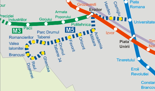 Tronsonul de metrou al magistralei 5, Drumul Taberei – Eroilor, va fi gata în circa doi ani, anunţa Anca Boagiu, Ministrul Transporturilor şi Infrastructurii. Autorităţile locale vor investi 8.5 miliarde de euro pentru reţeaua de metrou, magistrala M5 urmând să deservească peste 200.000 de locuitori. Primii călători ai magistralei M5 vor circula în 2014 sau 2015. Partea bună este că lucrările de la suprafaţă se vor încheia mai devreme, dacă totul merge ca la carte. Fiind primul punct de lucru efectiv, zona Răzoare ar putea fi "desfundată" prima, în condiţiile în care lucrările şi restricţiile de trafic aferente se vor muta în alte zone ale oraşului.