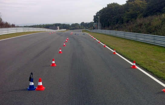 Frânezi de la peste 200 km/h şi apoi accelerezi din nou în virajul lung şi rapid care vine după linia dreaptă. Câteva jaloane ne arată unde ar trebui să ne încadrăm şi observ rapid că instructorii nu le-au amplasat degeaba pe circuit, pentru că indicaţia ”exterior, interior, exterior” nu este suficientă pentru a explica trasa pe unele viraje. Cel mai palpitant lucru este tranziţia de la un viraj la altul, când reuşeşti să accelerezi puţin şi frânezi din nou. Fiecare greşeală pe care o faci este resimţită imediat în comportamentul maşinii şi sistemele din dotare (pe care nu aveam voie să le dezactivăm) încep să le corecteze. Iar tu le ajuţi fie prin contrabracare, fie prin modularea acceleraţiei.