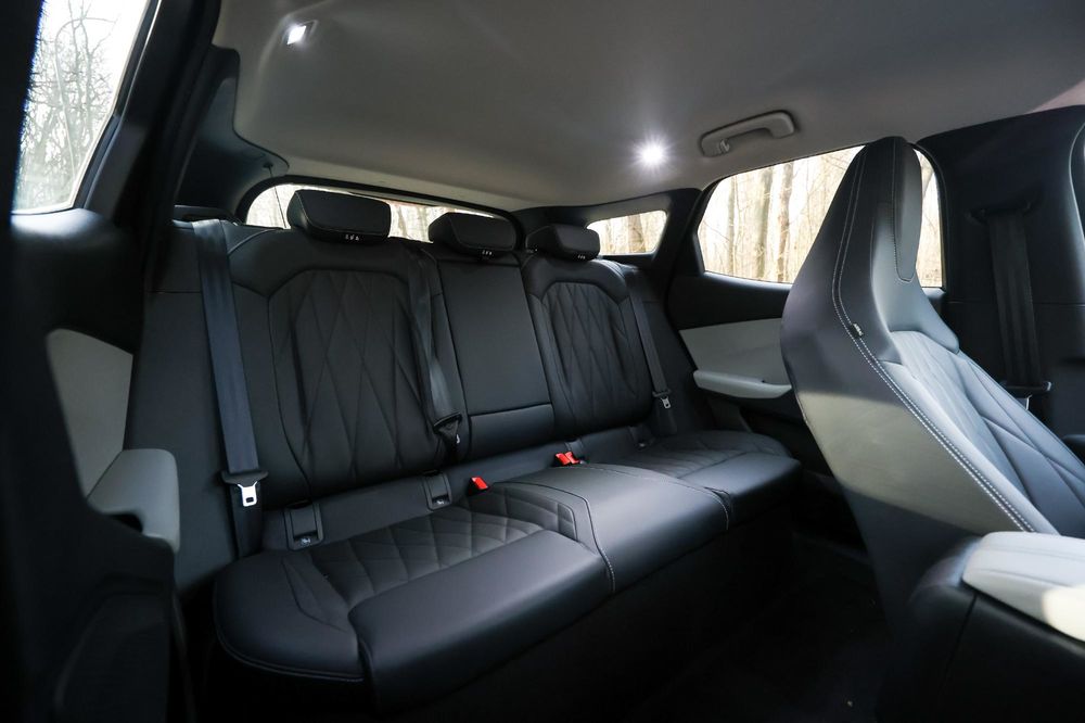 În spate, nu am avut aceleași probleme cu spațiul ca și colegul meu, Alex. Bine, eu am avut parte de o mașină mai mare și nici nu am 1.92 metri înălțime. Așadar, n-am avut probleme cu spațiul nici la cap, nici la picioare. În spate mai ai parte de o cotieră cu două suporturi de pahare, dar și porturi USB-Type C. Totodată, podeaua este plată, iar scaunul din mijloc este destul de lat încât să încapă 3 adulți pe banchetă.