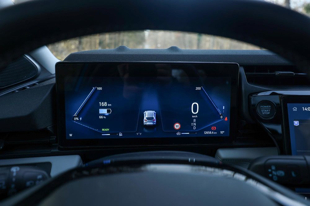 Spuneam mai sus despre instrumentarul de bord complet digital, de 12.8 inch. Acesta poate fi configurat ușor și în multe moduri. Astfel, în centrul ecranului, poți schimba informațiile afișate, de la date despre consum până la indicații ale sistemului de navigație, iar acestea sunt foarte ușor de citit.
