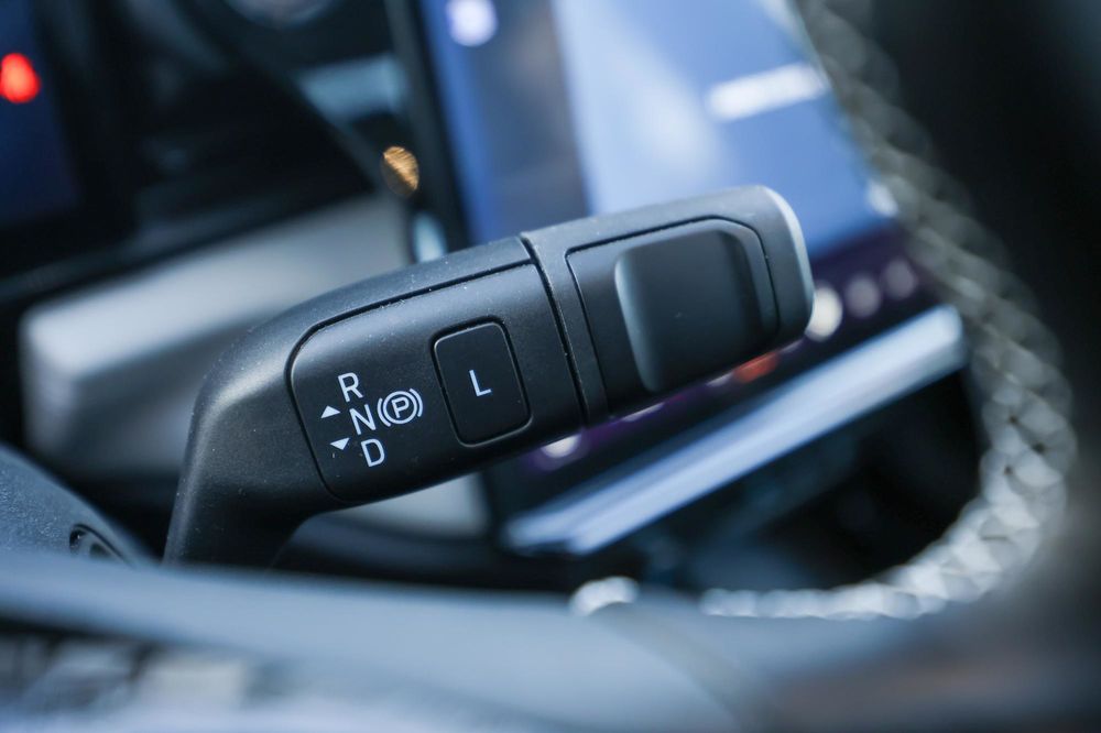 Pentru că vorbim, din nou, de o mașină electrică, nu avem o transmisie convențională, ci una cu o singură treaptă de viteză. Adică pui selectorul (regăsit pe coloana de direcție) în D și îți vezi de drum. Ai și o treaptă L, pentru o regenerare mai puternică.