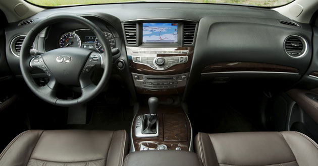 Expus la Salonul Auto de la Detroit şi destinat doar pieţei din SUA, Infiniti JX a impresionat prin interiorul atent creat. Lemnul premium se combină cu pielea somptuoasă şi aluminiul atent finisat.