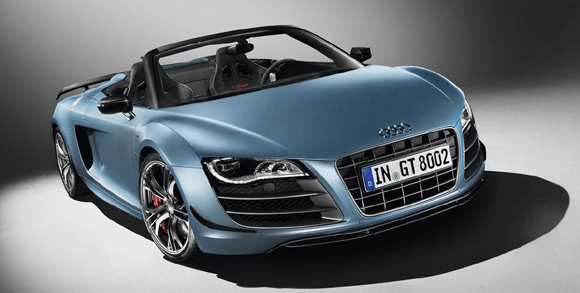 Una dintre vedetele standului Audi de la Frankfurt va fi noul R8 GT Spyder. Va un automobil destul de exclusiv, Audi intenţionând să producă doar 333 exemplare. Pentru performanţe de top, Audi foloseşte un motor V10 de 5.2 litri ce dezvoltă 560 CP. Este acelaşi motor folosit şi de Lamborghini pe modelul Gallardo. Inimă italiană în corp german. Şi pentru senzaţii deosebite, putem decapota maşina îm doar 19 secunde chiar şi în mişcare dacă viteza nu depăşeşte 50 km/h. Soft-top-ul are lunetă din sticlă. Transmisia este de tip R-Tronic şi are şase trepte iar preţul pentru un Audi R8 GT Spyder în Germania porneşte de la 207.800 euro.