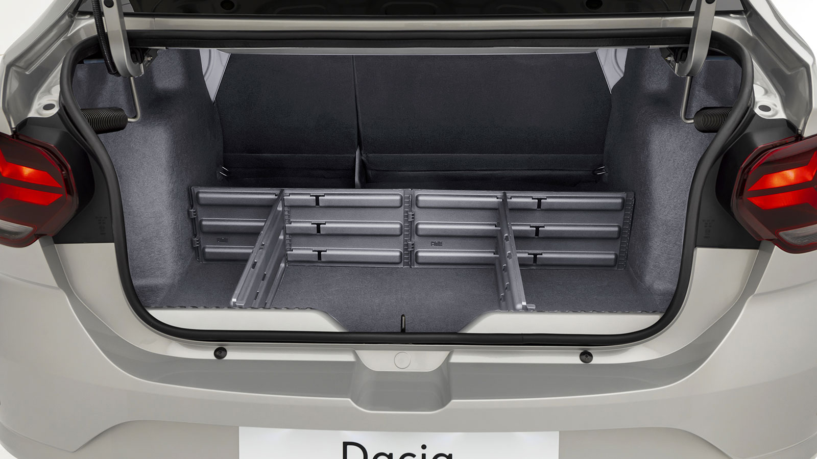 În cazul noului Logan, portbagajul este echipat cu un sistem de depozitare inedit alcătuit din patru panouri. Acestea permit compartimentarea portbagajului în patru zone de mărimi diferite și oferă mai multă siguranță la transportul unor obiecte sensibile, cum ar fi laptopurile.