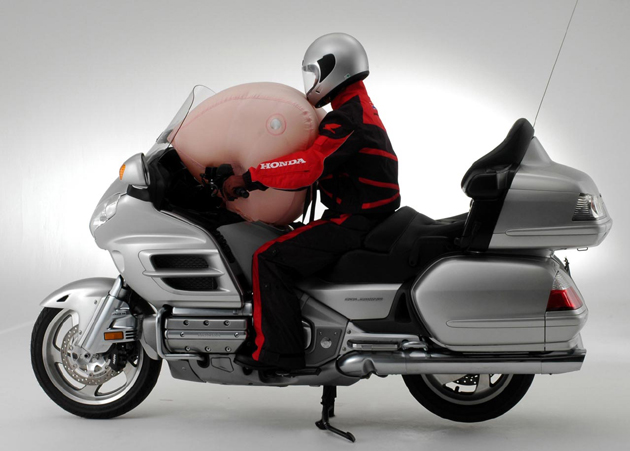 Lumea moto a testat îndelug diverse interpretări ale airbagului pentru protecţia motocicliştilor în caz de accident. Honda a introdus un airbag frontal pe modelul Gold Wing din 2006. Astăzi există inclusiv geci moto cu airbag, un producător de top fiind Helite. Aceste geci detectează când motociclistul şi-a pierdut echilibrul şi un impact cu asfaltul este iminent şi umflă o pernă protectoare aflată în geacă pentru a proteja spatele.