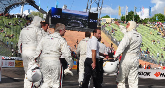 Te uiţi în stânga, te uiţi în dreapta, o mare de steguleţe şi oameni nerăbdători. Nu degeaba, în fiecare an, la Munchen, cele trei titani premium, Audi, BMW şi Mercedes, o pun de o spectaculoasă etapă demonstrativă cu maşinile din DTM.