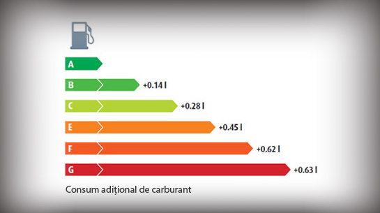 Conform criteriilor de notare de pe noua etichetă, o anvelopă de Grad A consumă pe întreg ciclul său de viaţă (40.000 de kilometri) cu 240 de litri de combustibil mai puţin decât una de Grad G. Altfel spus, la fiecare 100 de kilometri parcurşi, consumul adiţional al unei maşini echipate cu o anvelopă de grad G la acest capitol este de 0.63 de litri. În calcul a fost luată o maşină cu media de consum de 7 litri/100 km care parcurge anual 15.000 de kilometri. Dacă toate maşinile din Europa ar circula cu anvelope de Grad A, economia de carburant la nivelul continentului ar fi de 27 de miliarde de euro pe an.