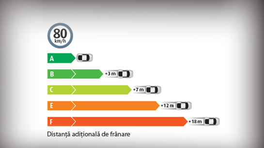 "Alegerea unei anvelope pentru maşini de pasageri cu grad A la aderenţa pe carosabil umed în locul unei anvelope cu grad G, ar putea însemna o reducere cu 30% a distanţei de frânare pe suprafeţele de drum umede – adică oprirea cu până la 18 metri mai devreme. Aceasta însemnă trei sau chiar patru lungimi de maşină", susţine Jean-Pierre Jeusette, directorul general al centrului de inovare Goodyear din Luxemburg. "Cu toate acestea, eticheta poate servi doar ca punct de plecare pentru consumatori şi managerii de flote, care ar trebui să caute dincolo de etichetă alte criterii care afectează performanţa per ansamblu a unei anvelope. Pentru o perspectivă mai largă, Goodyear testează peste 50 de factori diferiţi în timpul procesului de dezvoltare al unei anvelope, printre aceştia numărându-se manevrabilitatea anvelopei în condiţii de drum uscat şi umed, stabilitatea laterală şi stabilitatea la viteză mare. Un element crucial pentru siguranţă, performanţa nivelului rezistenţei la acvaplanare în curbe nu este reflectat pe noua etichetă UE pentru anvelope", încheie acesta.
