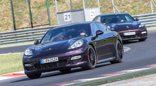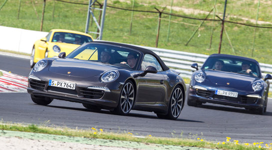 Miroase a zgomot de motoare, iar atunci când apeși accelerația până la capăt simți că în tine lucrează mulți pitici mici-mici care îți izbesc creierul de cutia craniană și care îți împing coloana vertebrală în scaunele alea perfecte. Schimbi mașinile cu o frenezie care pare necontrolată, dar care urmează niște tipare matematice în mintea instructorilor Porsche veniți special pentru acest eveniment din Germania sau Ungaria. Înveți pe rând virajele circuitului. Primul e un ac de păr înaintea căruia frânezi diferit, în funcție de mașina pe care o conduci. Un 911, de exemplu, se oprește mult - logic - mai repede și mult mai ușor decât un Cayenne sau un Panamera, chiar și dacă acestea din urmă sunt construite pe șasiuri sport, special destinate circuitului. Un Boxster este mult mai ușor și mai manevrabil, deci trasele sunt ușor diferite. Un Cayenne GTS cu frâne ceramice răspunde la apăsarea pedalei instantaneu, pe când unul cu frâne normale are nevoie de câțiva metri în plus. Panamera e un sedan confortabil care însă reușește să-și apese roțile pe circuit la nevoie surprinzător de bine, chiar dacă cu câteva fracțiuni de secundă înainte, pe când ai început să apeși pedala, aveai impresia că te vei opri în panourile de pe marginea circuitului.