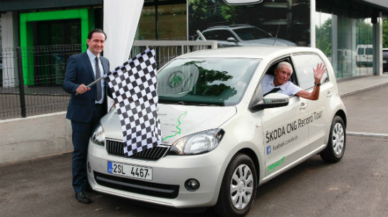 Anul acesta, Gerhard Plattner a stabilit un nou record, dar de data aceasta cu un automobil alimentat cu gaz natural comprimat. Plattner a avut un buget de 100 euro pentru a alimenta cu gaz natural, iar scopul său a fost să parcurgă cât mai mulţi kilometri. Austriacul a parcurs 2.619 kilometri din Italia până în Suedia. Plattner a reuşit astfel să obţină un consum mediu de gaz natural comprimat de 2.39 kg/100 km. Modelul Skoda Citigo CNG foloseşte motorul 1.0 de 68 şi poate fi alimentat atât cu benzină normală, cât şi cu gaz natural comprimat.