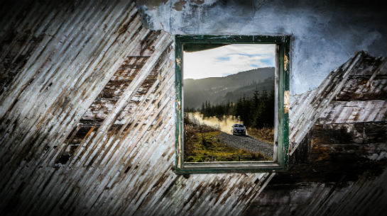 Tot din motorsport vine şi imaginea de care Dragoş este cel mai mândru. "La ultima etapă din acest sezon, disputată la Harghita, am găsit o cabană dărâmată, iar o fereastră spartă şi stricată m-a ajutat să încadrez maşina ca într-o ramă de tablou."