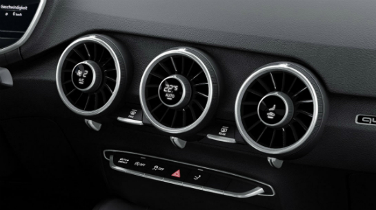 La interior, designerii Audi au mers pe o temă minimalistă. este stilul abordat de mai multe modele Audi din ultima vreme, inclusiv actualul A3. Interiorul este dominat de cele cinci guri de ventilaţie rotunde, o trăsătură de design specifică pentru Audi TT. Gurile de ventilaţie au acum înglobat şi un display digital, iar comanda de reglare a temperaturii a fost integrată direct în priza de aer.