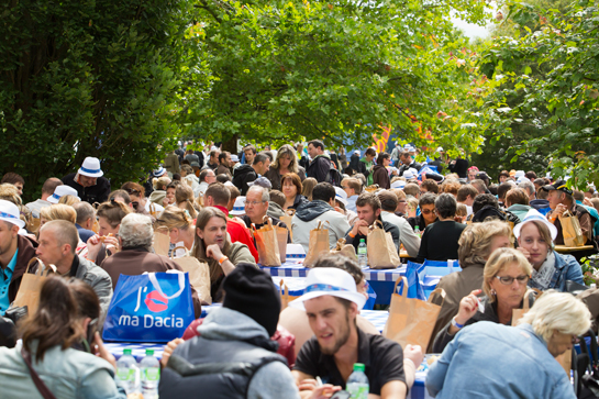 Evenimentul a fost botezat Marele Picnic Dacia şi a ajuns în 2014 la a şasea ediţie, astfel că a devenit o tradiţie binecunoscută şi mult aşteptată de fiecare francez care a cumpărat măcar una dintre cele 600.000 de maşini pe care Dacia le-a vândut în Franţa din 2005 încoace. Oamenii ajung la Courson cu familiile în maşina proprie, pe care o parchează într-una dintre cele trei parcele imense extrem de bine organizate din jurul Domeniului. Deşi căile de acces sunt înguste, şi este normal să fie aşa din moment ce ne aflăm într-o comună, cozile kilometrice lipsesc cu desăvârşire, iar evenimentul pare organizat impecabil încă dinainte să păşim pe iarba superbă de lângă castelul francez. În parcări se intră şi se parchează ordonat, în ordinea sosirii, iar cele 3100 de Dacii care au ajuns astăzi la Courson reuşesc să se aşeze una lângă alta fără a se bloca reciproc, în linişte. Din maşini ies mame şi taţi cu doi-trei copii în medie, familiile numeroase fiind una dintre ţintele preferate ale mărcii Dacia în Franţa.